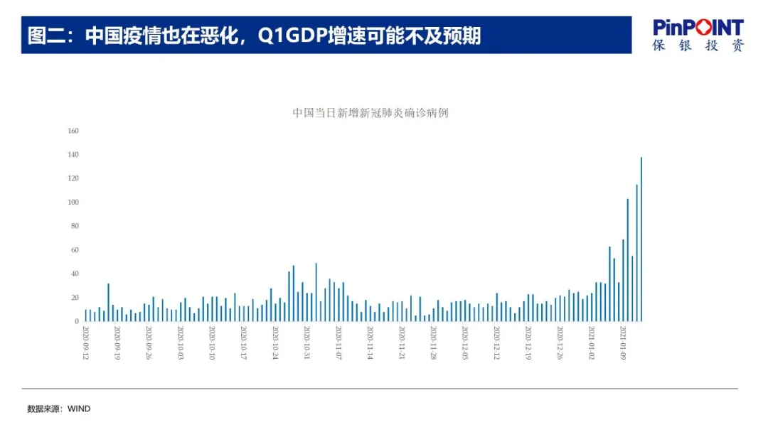 由此,我们认为,新冠病毒可能会和我们长期共存,疫苗并不能彻底解决问题,新冠疫情的风险可能被低估。对于国内宏观经济,短期来看,在生产端的影响可能不大,因为有了去年春节疫情的经验,很多工厂可能都会采取应急措施,很多工人也可能不会回老家,选择留在当地过春节。需求端受到的冲击相对会更大一些,值得关注。从长期来看,当前通过严防紧守断绝人员流动的应对方式成本较高,也许需要探索研究如何应对疫情的长期战略。