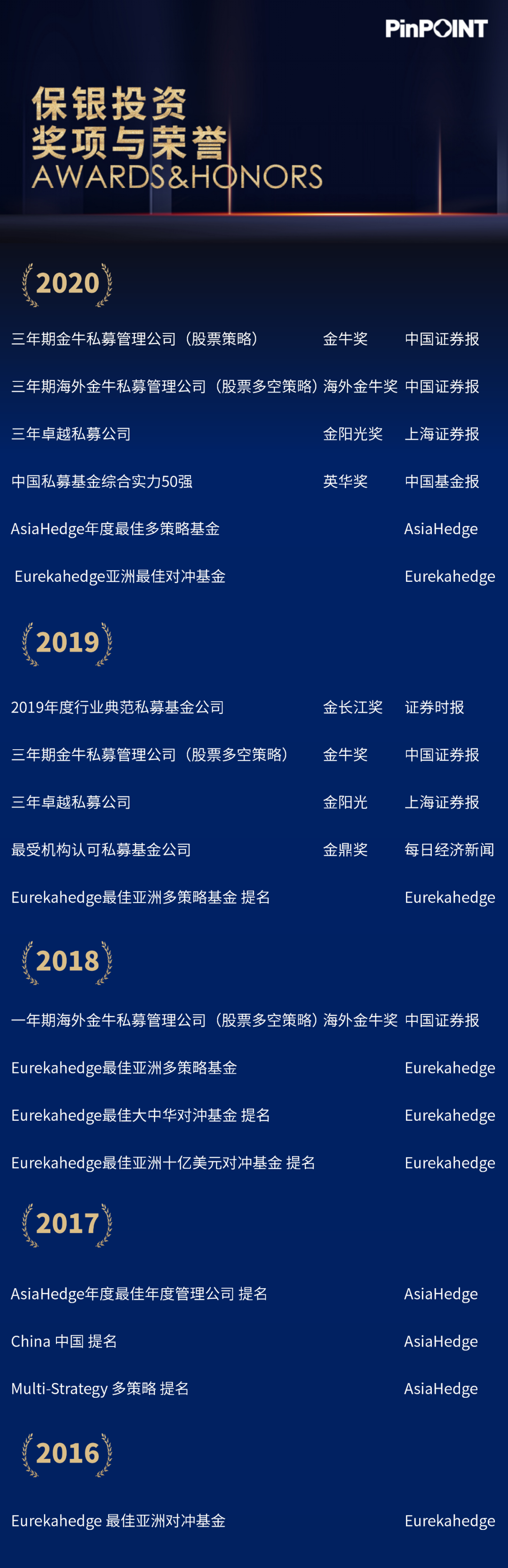 以下为保银投资(国内+海外)历年获得的主要奖项: