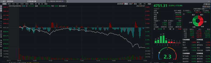 继“黑色星期一”后,7月27日(周二)A股再次大跌。沪深300指数下跌3.53%、恒生中国企业指数下跌5.08%;本周以来,沪深300指数下跌6.64%、恒生中国企业指数下跌9.75%。