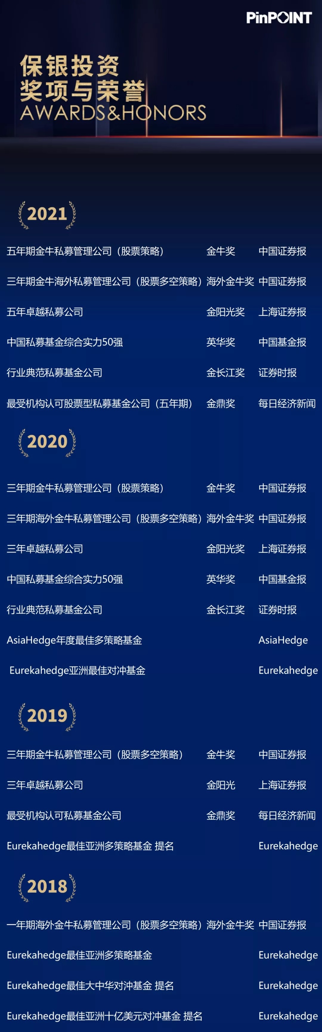 以下为保银投资(国内+海外)历年获得的主要奖项: