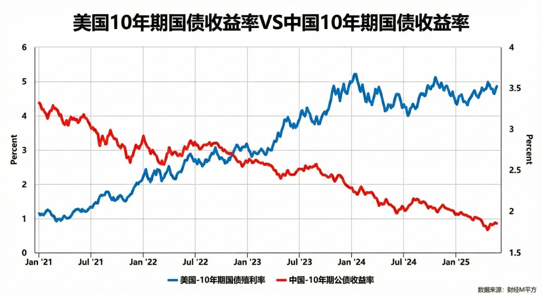 在过去两年中,中美利差呈现显著的“倒挂”状态,美国国债收益率远高于中国国债收益率。这种利差结构对中国央行构成了硬约束: