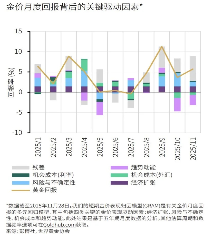 根据世界黄金协会的金价归因模型(GRAM),2025年的大涨中,“趋势动能”这一因子贡献显著。然而,趋势交易(CTA)往往是双刃剑。