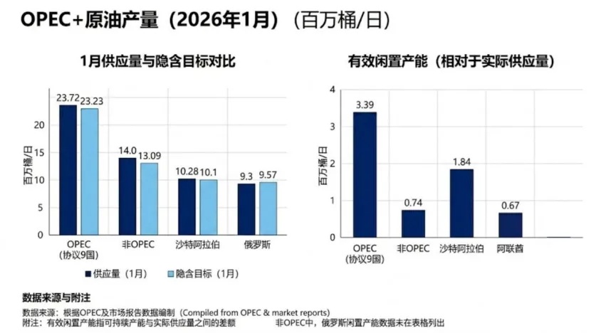 首先,OPEC的剩余产能存在名义与实际的巨大落差。目前OPEC名义上的剩余产能约为300万桶/日,但剔除受限基础设施或短期内难以规模化投产的部分,实际可快速释放的有效产能估计仅在100万桶/日左右。这意味着,OPEC的实际干预能力远低于市场此前的乐观计价。