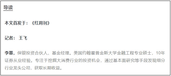 《红周刊》:我们看到,很多消费龙头每年的净利润增速在10%~20%,但是其估值也达到了60倍甚至100多倍。您是如何对它们估值的?它们的投资空间还有多大?